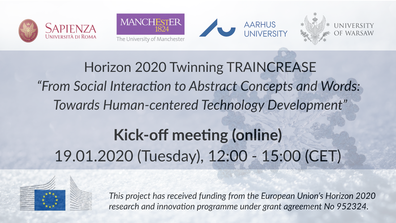 The project “From Social Interaction to Abstract Concepts and Words: Towards Human-centered Technology Development” is aimed at strengthening the interdisciplinary field of research on the emergence, understanding and use of abstract concepts and words in human, and human-machine interaction through the collaboration between the University of Warsaw, the University of Manchester, Sapienza University of Rome and Aarhus University. At the same time, the goal is to strengthen the research potential and research management skills at the University of Warsaw.